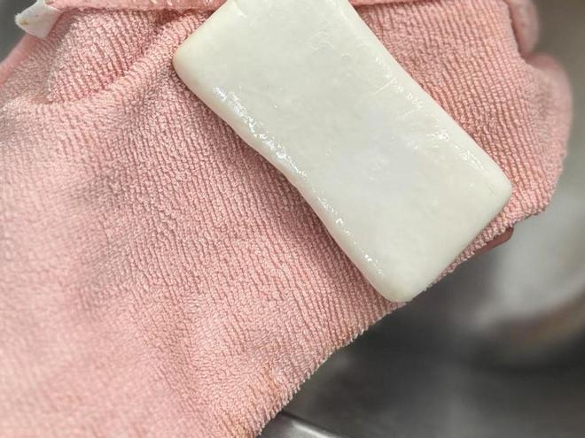 之后,将肥皂放在折叠好的毛巾上,就是一个肥皂垫。