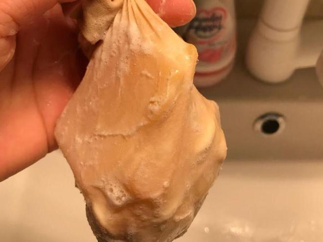 厨房如果没有滤网,那么还有另外一种方法,就是找一个不穿的丝袜简单制作一个肥皂兜。