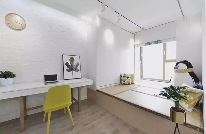榻榻米地台加书房的设计,简单明了,同时还将空间发挥到了最大,非常的清爽。