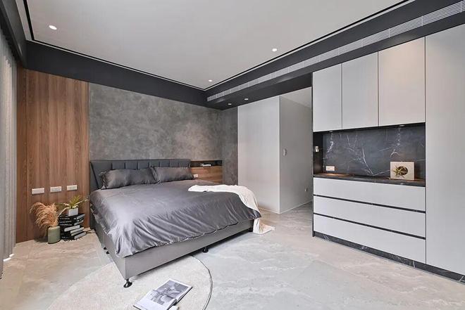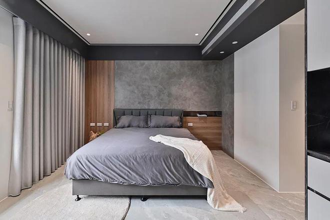 释放视觉张力,走入卧眠区时,以手感纹理的灰底蕴