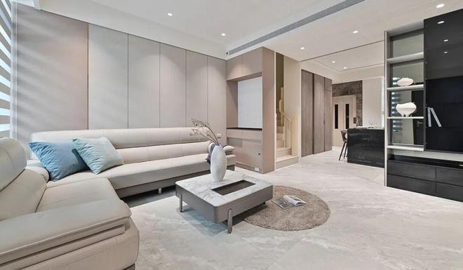 并与浅暖色蕴的沙发背墙,映衬了家的简约奢美