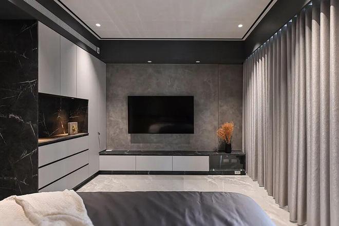 打造了电视墙,使得主卧室揉製了多种起居功能