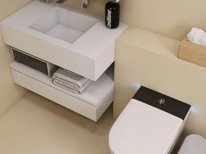 传统的壁挂式马桶的水箱,由于凸出来一大块,感觉占地方浪费空间。