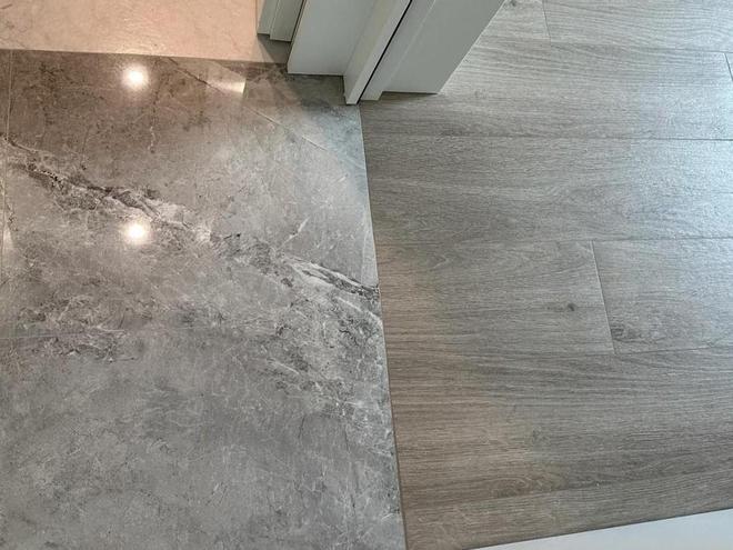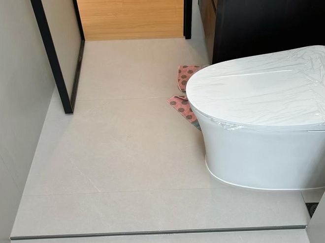 做法建议:门口无缝拼接,对施工工艺要求高,装修前要提前约定。而卫生间湿区,必须保证地面坡度,确保水不会外溢。