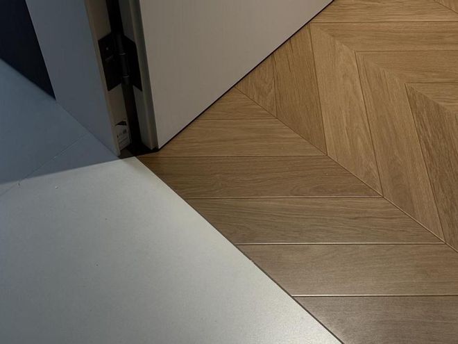 仅仅就是这个取消过门石的做法,让视觉上整体统一,高级感立马就出来了。因为取消了凸起的过门石,通行就没有障碍了。而且门口也减少了卫生死角,家里显得干净了。
