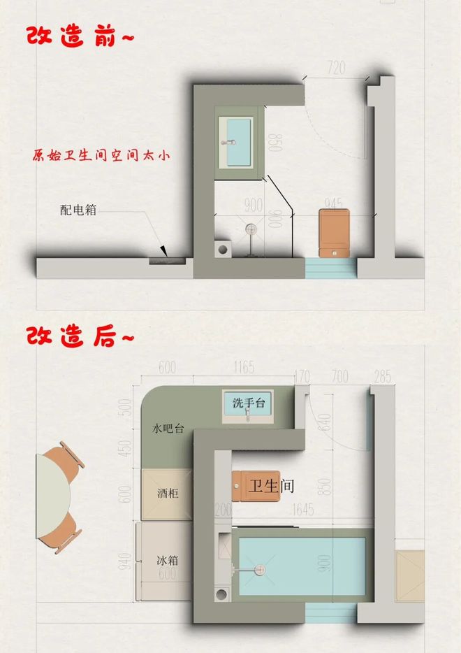 ❗ 排水问题:外移洗手台需重排下水管,老房要确认楼板结构