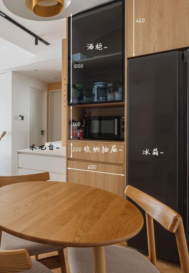 ❗ 使用习惯:水吧台建议离餐桌<1.5m,动线更流畅
