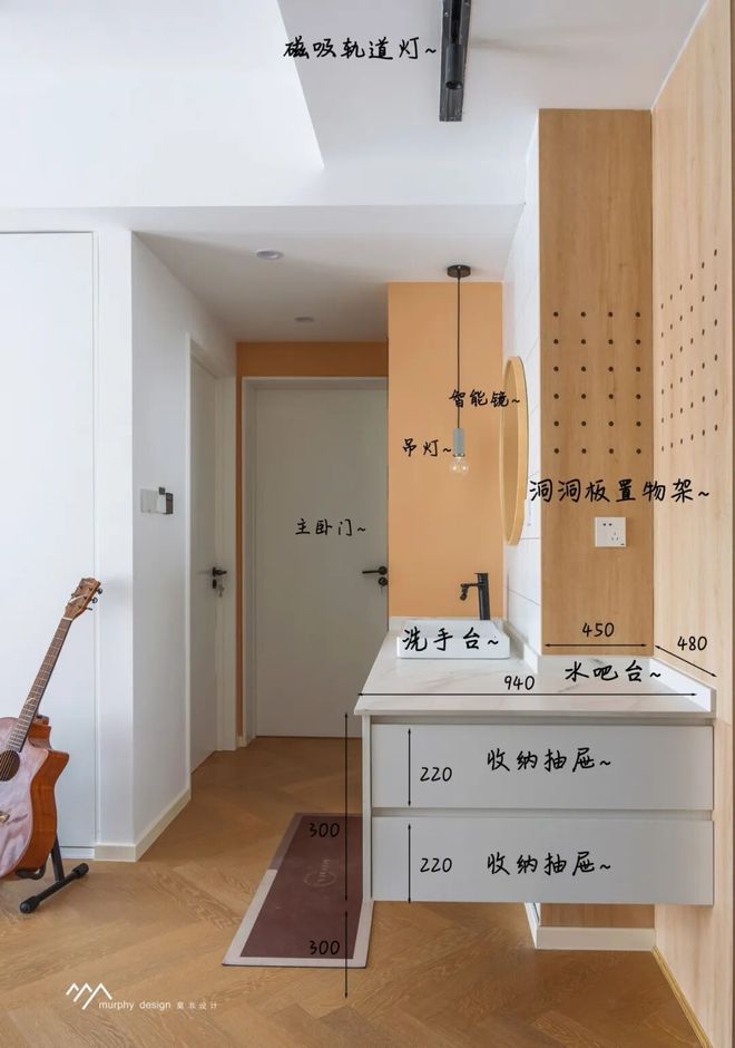 解决方案:洗手台外移,结合餐厅水吧台 设计细节 & 施工要点