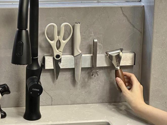 对于厨房的刀具,现在越来越多人选择磁吸式上墙收纳。