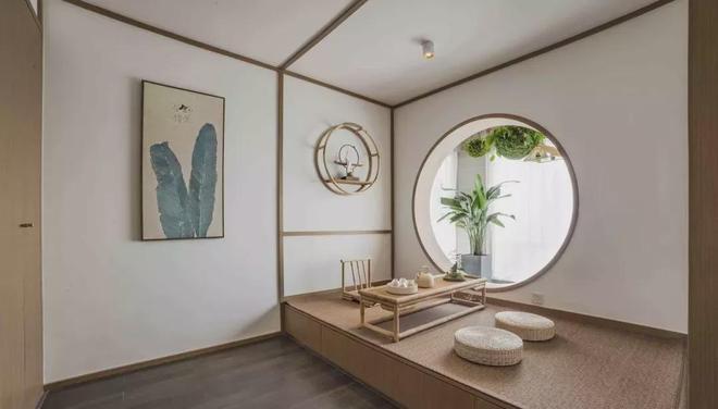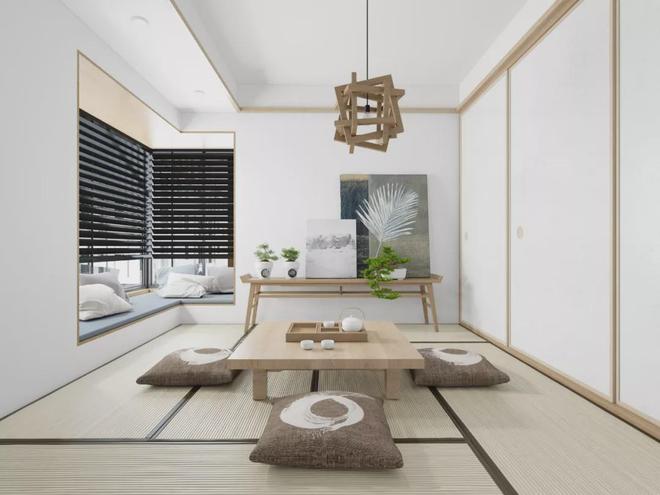 而在榻榻米之上,有中式和日式的两种风格的茶室家具供你选择。中式则是木或竹,日式则是蒲团或者软垫,非常惬意。