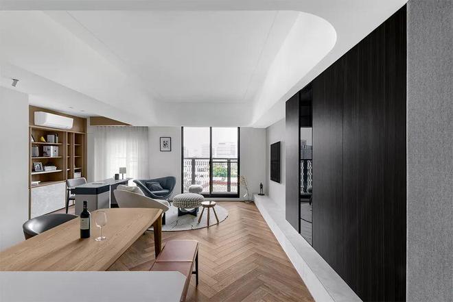 柜面从客厅一直往外,恰如平衡了整座牆体的立体度