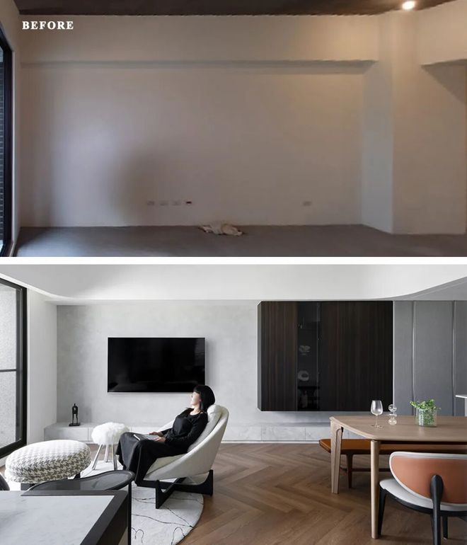 再筑起交揉著屋主喜爱的冷灰调柜体