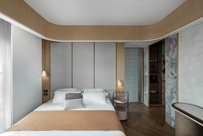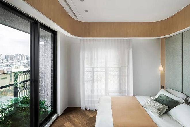 在仰躺时,就能看到从书房延伸而来的带状木质