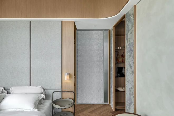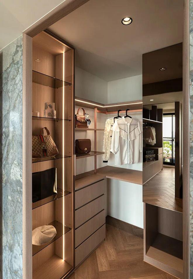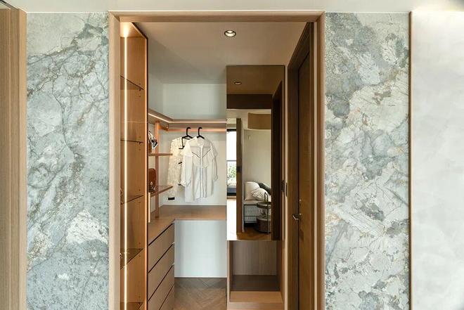 藉由拆卸一房之后,打造了一间与卧眠区相邻的大更衣区