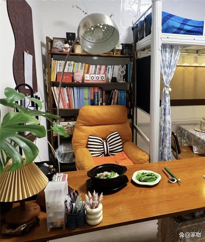 【空间紧凑,却留出书房和书架位置】