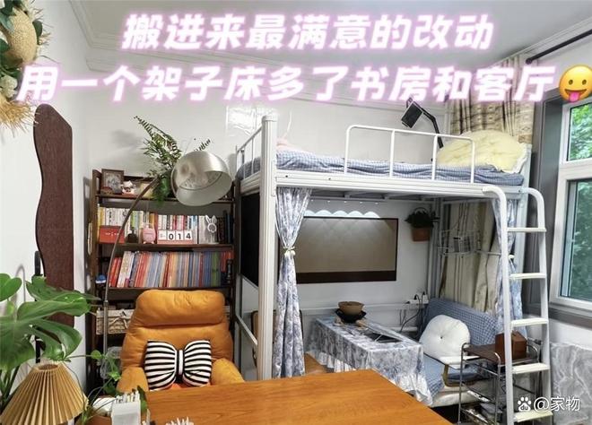 上铺当做单人床,留出原本睡眠休息的空间,相当于次卧室的功能。