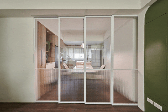 厨房打造一扇分割比例显得简约的 4 片玻璃拉门