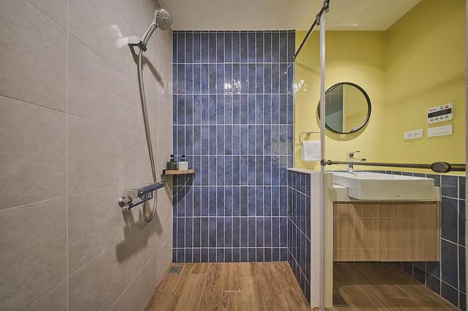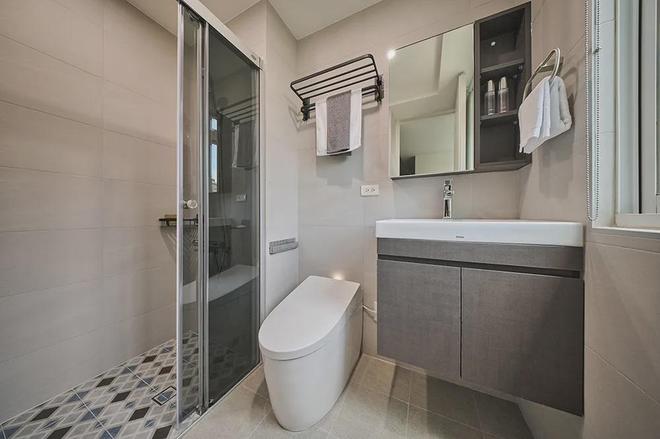 便以日式作法增添实用性,并在一扇玻璃门后方
