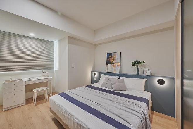 与深度 15 公分莫兰迪色系的床头柜相互烘托