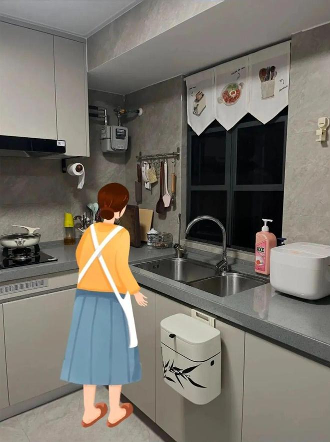 可真正入住后就会发现,厨房里的油污真的是无处不在,而放在隔板上的瓶瓶罐罐没几天就蒙上一层油膜,极大增加了家务量。