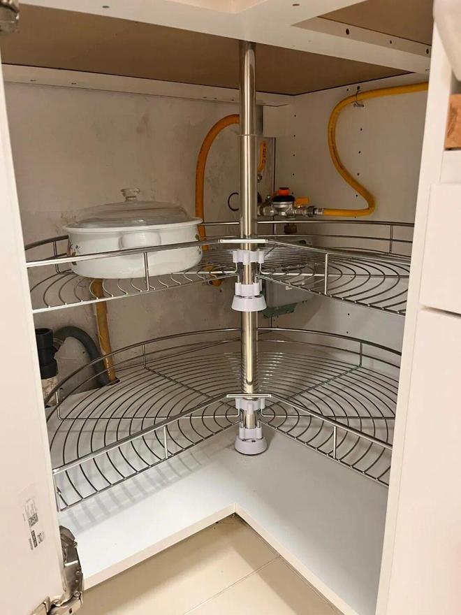 不少人为了让橱柜转角空间更好用一些,都会安装一个拉篮。