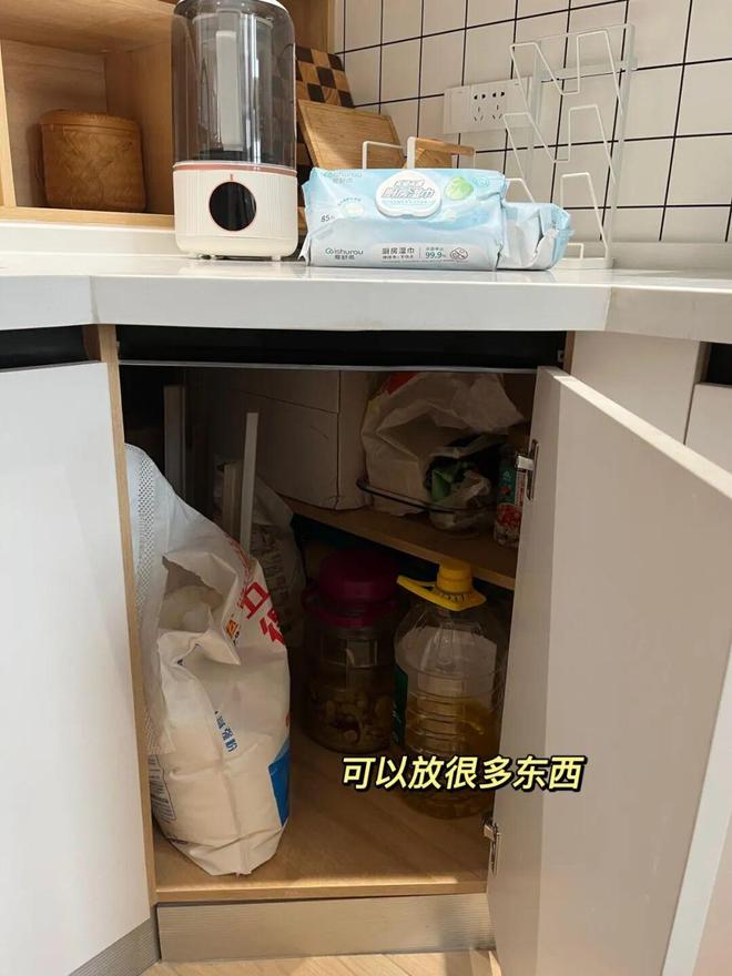可真正入住后就会发现,拉篮并没有想象中那么好用。虽然方便了收纳,但收纳力十分有限,且特别占用空间。