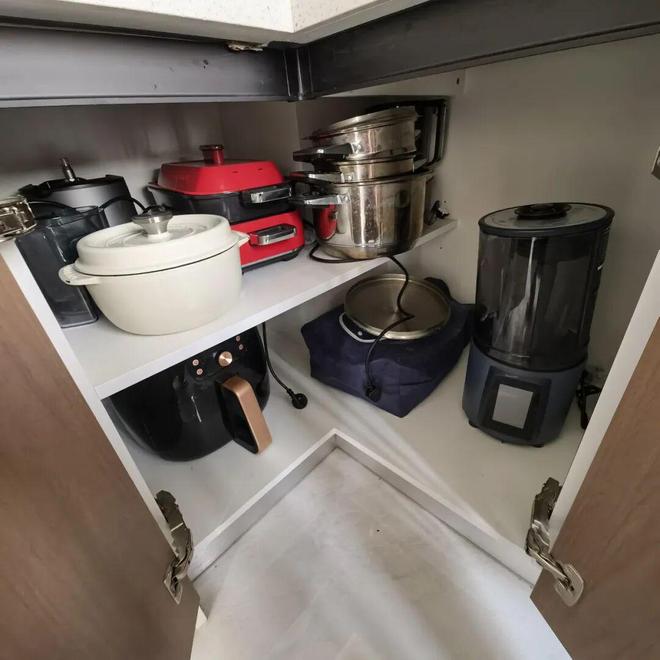可实际上,真正需要收纳的,其实是那些不起眼小家电。比如空气炸锅、电饼铛、微波炉......