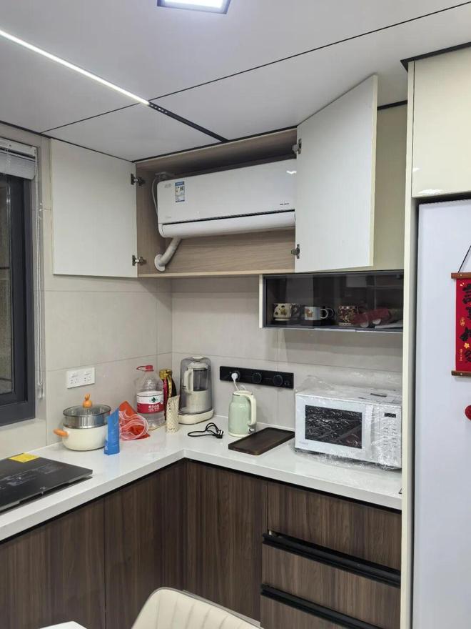 比如把它安装在吊柜里,用起时打开,不用时关闭。除了会占用点空间之外,一点问题都没有。