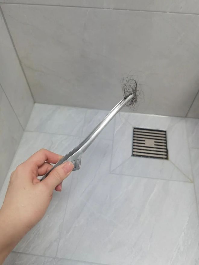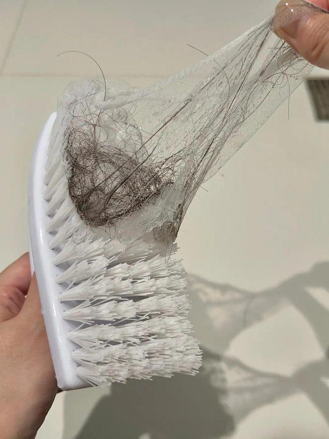 地面潮湿,给刷子套一个水槽过滤网,再去清理地面的毛发,不仅效率高,毛发还不会缠刷子。