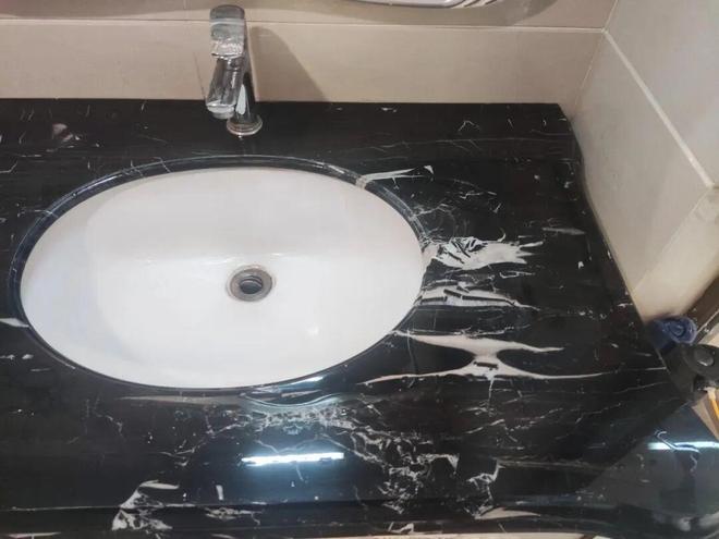 如果卫生间的淋浴地面,浴室柜台面,挡水条用了黑色大理石,那么往往会出现返碱发白的情况。