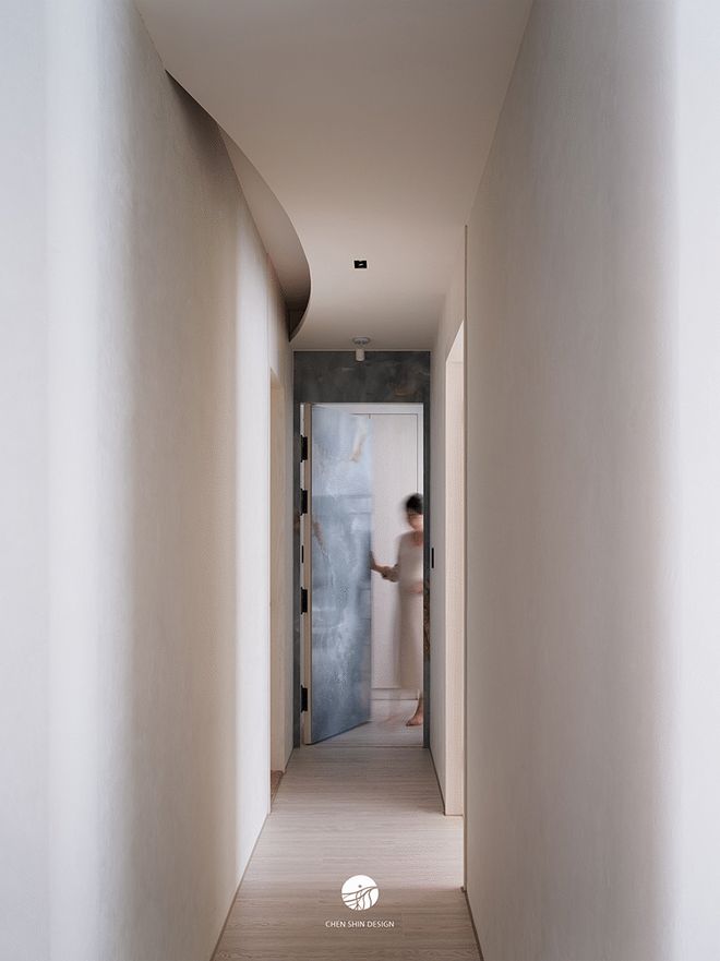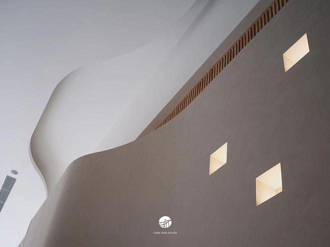 弧面入主墙前,巧妙交织三个不规则小窗洞