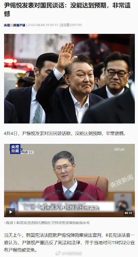 尹锡悦被罢免后发表谈话