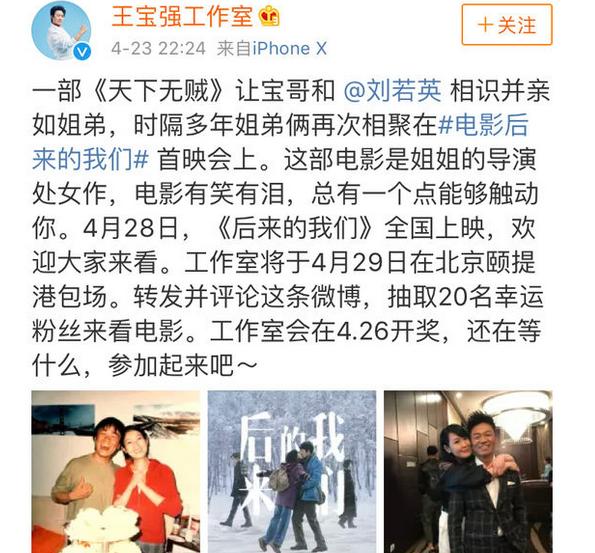 王宝强包场支持刘若英新片 尴尬了徐峥